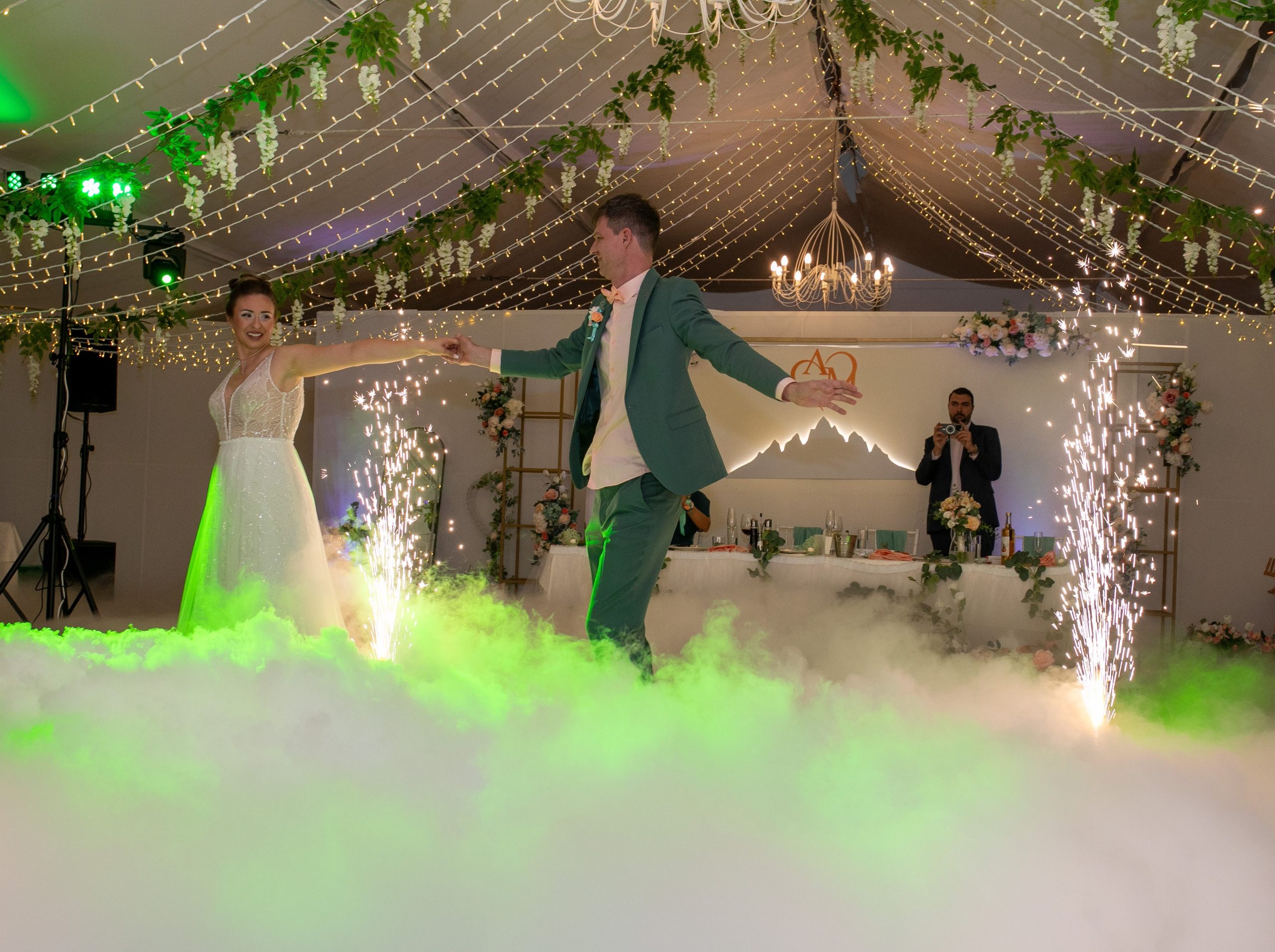 - Машина за тежък дим: ефект „танц в облаците“ за първия танц.