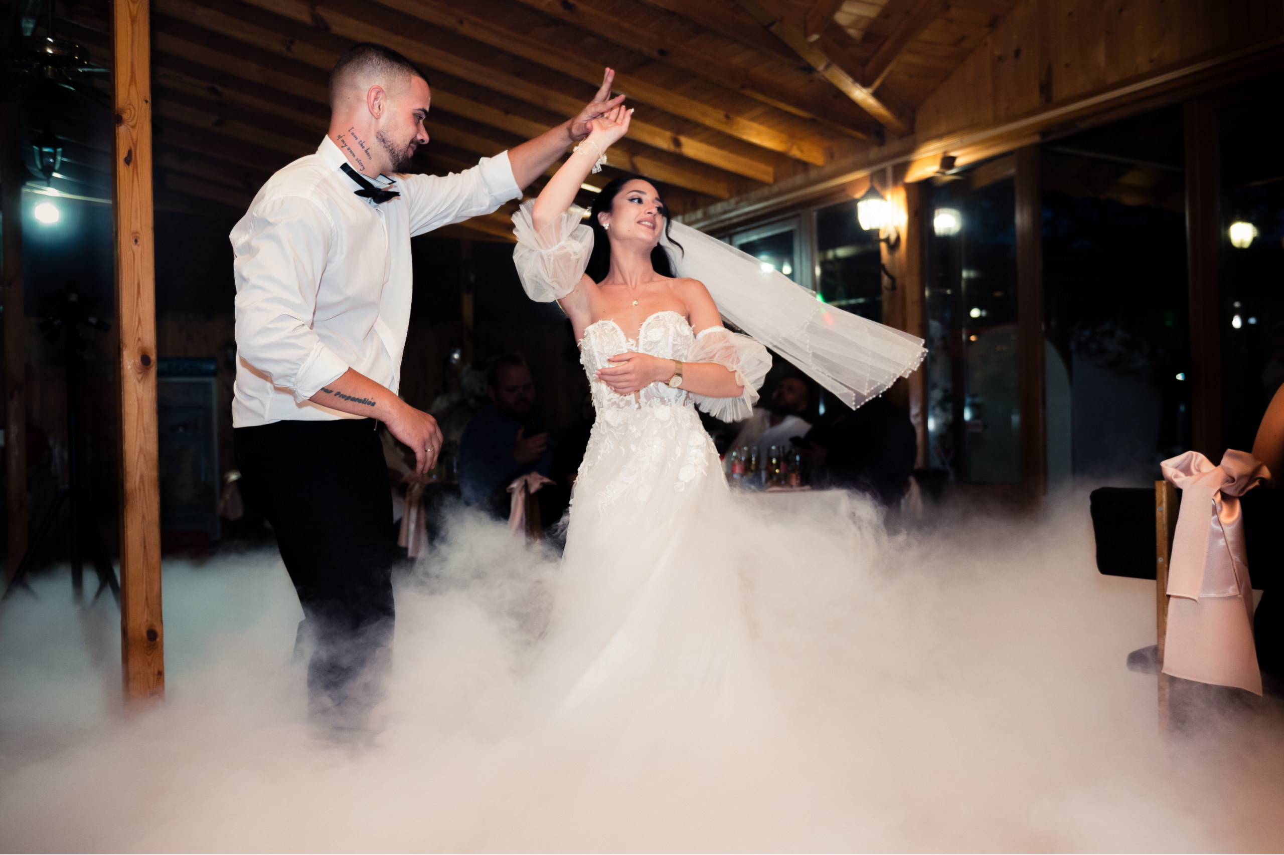 Танц в облаците. Машината за тежък дим създава уникален визуален ефект, който придава магия и приказна атмосфера по време на първия сватбен танц или друг специален момент от сватбеното тържество. С помощта ѝ дансингът или сцената се изпълват с плътен, ниско стелещ се дим, който изглежда като облак, обгръщащ краката на танцуващите и създава впечатляващи кадри, които остават в съзнанието ни за цял живот.